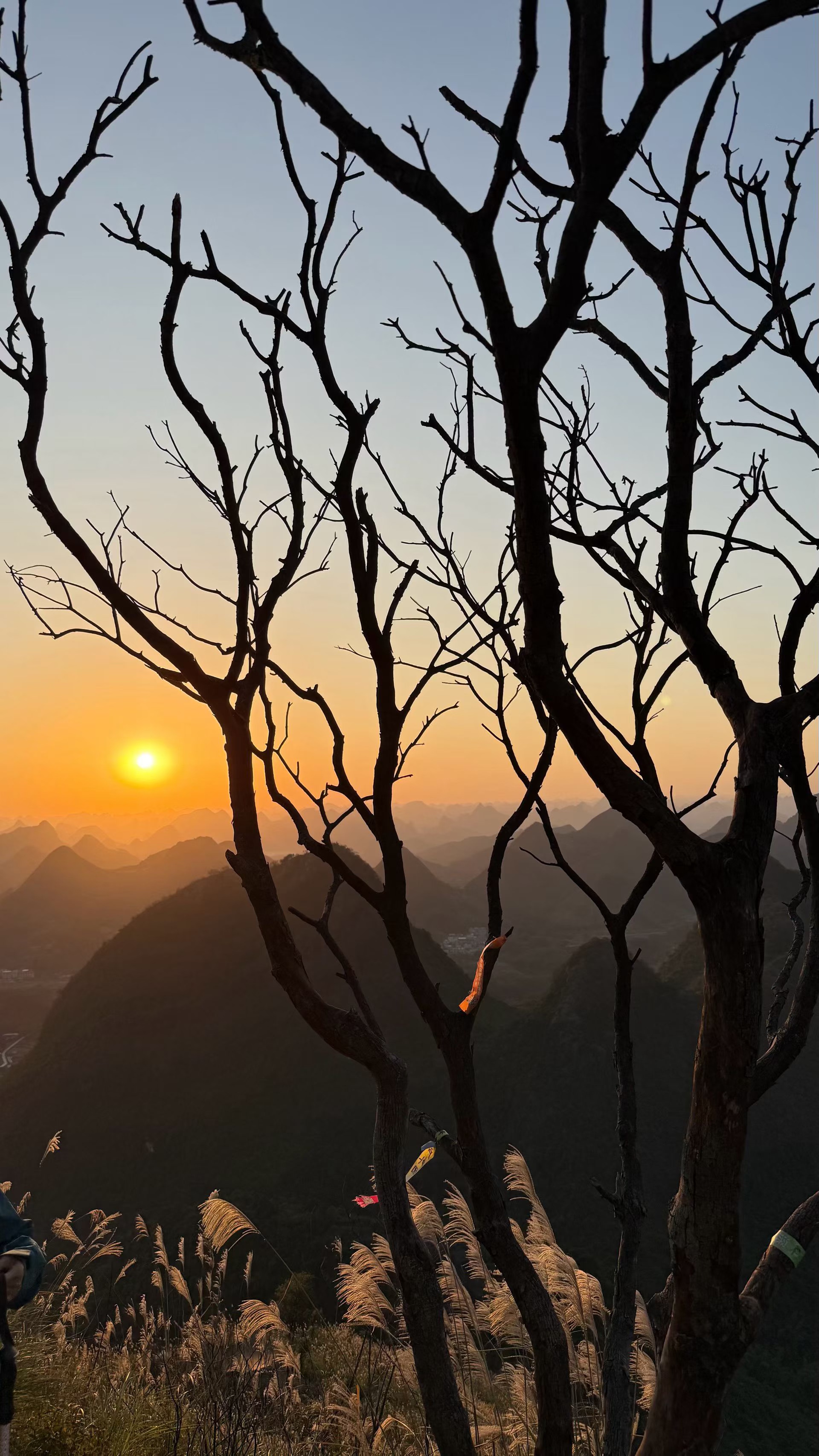 徒步马山“飞鹰山”,最令人心动的体验莫过于在山脊之上观赏一场绝美日落。当夕阳的余晖洒满层峦叠嶂,群山轮廓被染上金色,景致尤为震撼。不少资深户外爱好者更是不惜背负装备,选择在山顶露营,静待翌日清晨的日出,在天地壮阔中感受自然的神奇魅力。