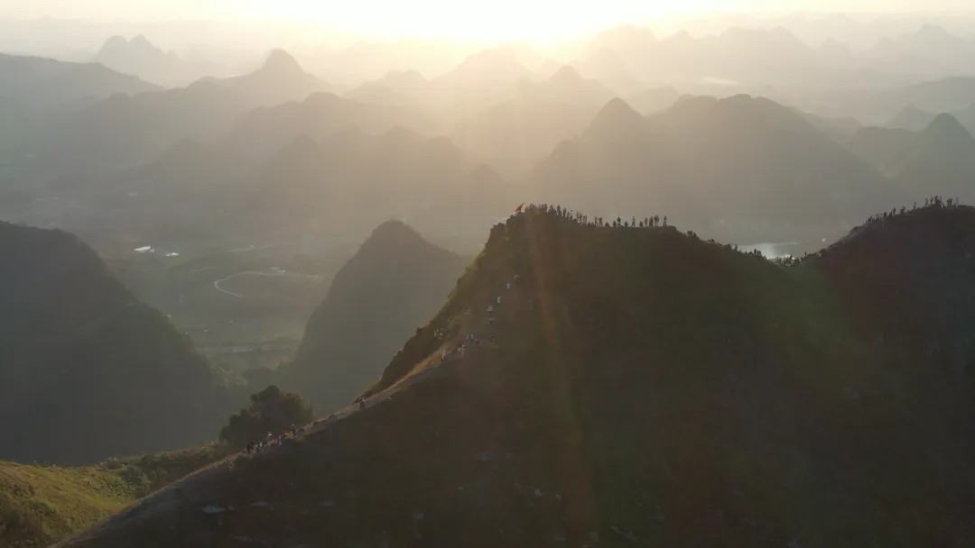 近日,随着马山“飞鹰山”在各大社交平台和户外圈的持续走红,这座藏于山野的喀斯特奇峰迅速成为众多徒步爱好者与摄影师的向往之地。其标志性的绝美山脊线,如龙脊般横亘于群山之间,独特的喀斯特地貌景观与绵延起伏的壮丽山脉,构成了令人叹为观止的自然画卷,吸引了越来越多的游客前往探索打卡。