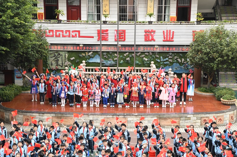“五星红旗迎风飘扬,胜利歌声多么响亮……”清澈的童声穿透云端,汇聚成对祖国母亲的深情告白。这一刻,首府城市与边境地区的距离被歌声消弭,各族师生的心紧紧相连。孩子们将对民族文化的热爱、对团结奋进的期盼、对美好未来的憧憬,全部融入这熟悉的旋律之中。“各民族像石榴籽一样紧紧拥抱在一起”的理念,随着歌声深深扎根于每个孩子的心底,化为铸牢中华民族共同体意识的坚实根基。
