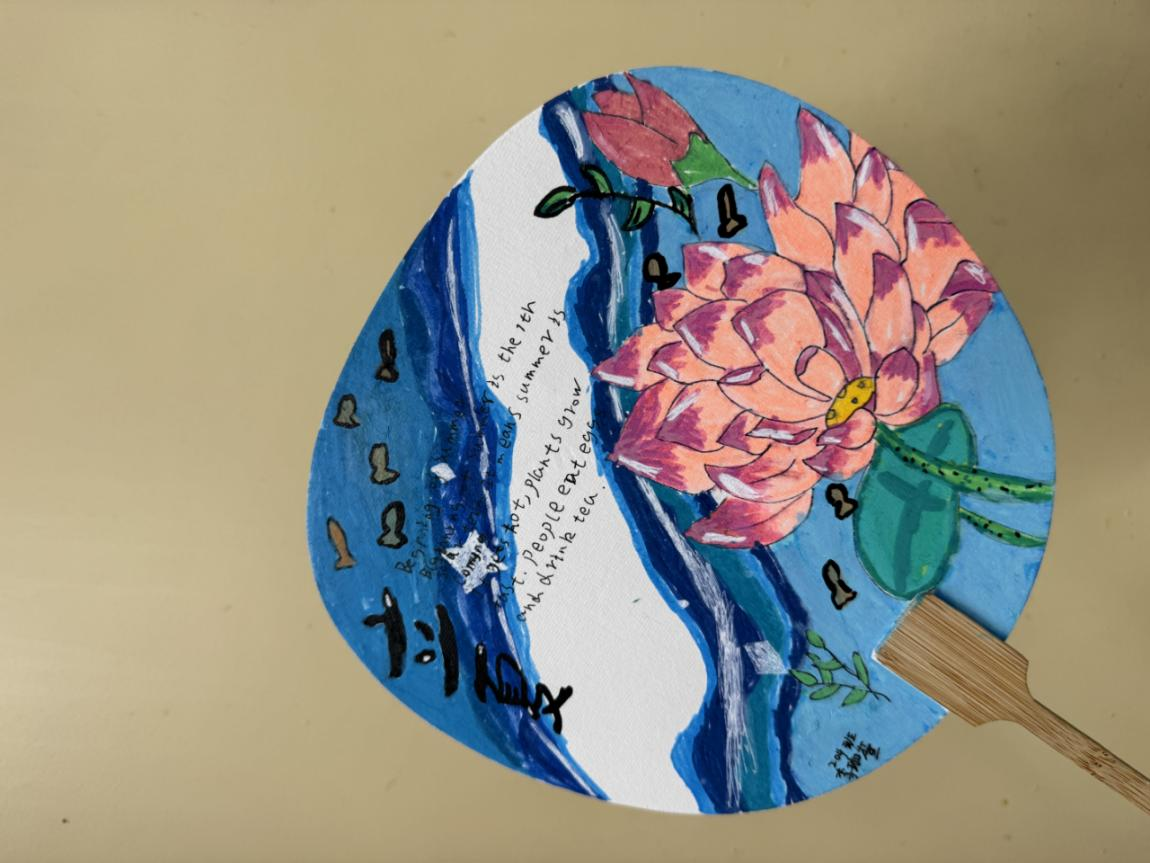 六年级将二十四节气与团扇结合,借助AI规范英文表达,尽显传统雅韵与语言素养。