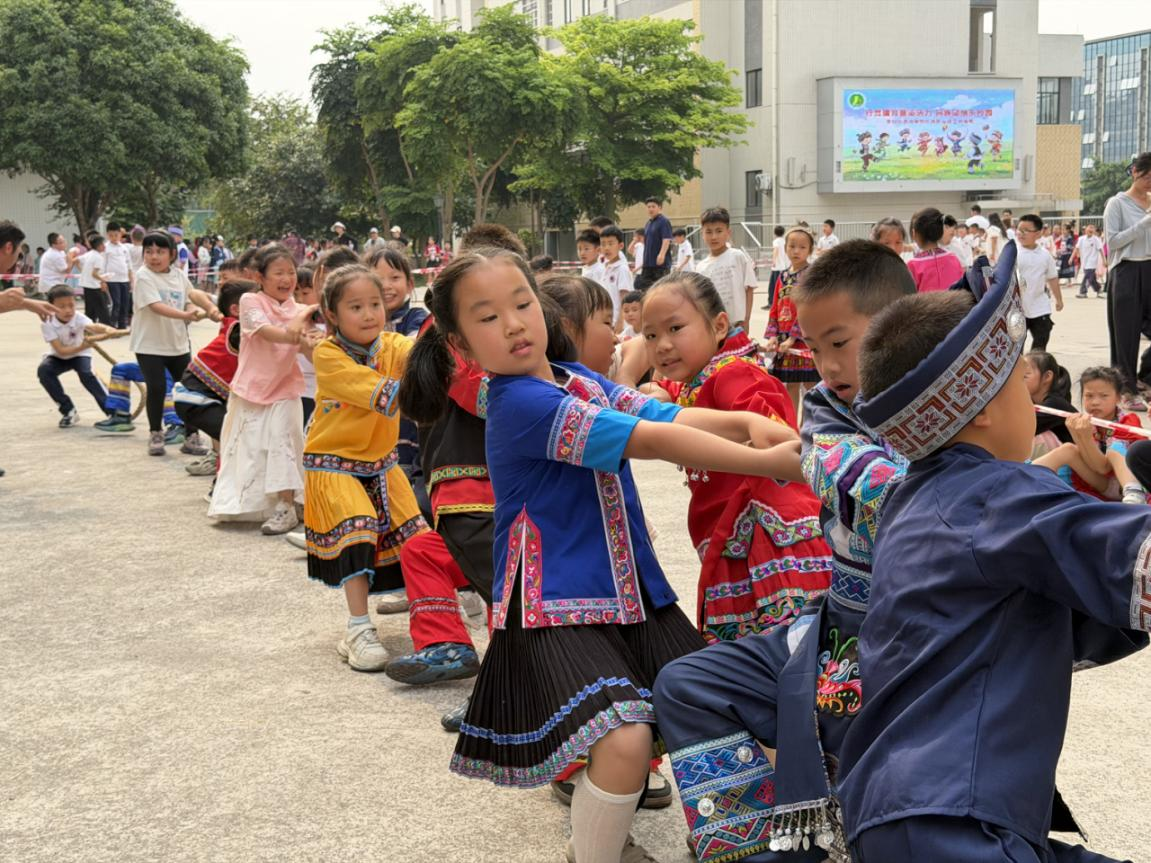 4月15日,学校三月三民族体育运动会暖心开赛,壮乡民俗与阳光体育深度融合,一至六年级全员上阵,在运动中强体魄、聚合力、铸牢中华民族共同体意识。