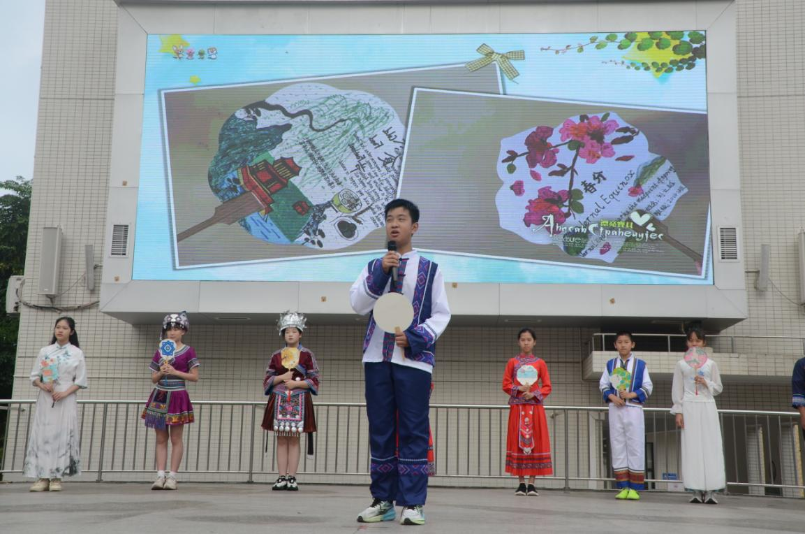 为传承广西“三月三”民俗文化,深化学科融合与素质教育,学校首届英语节以AI赋能教学,推动英语与美术、语文、传统文化深度融合,三至六年级全员参与,在趣味实践中乐学英语、传承文脉。让壮乡文化与英语学习同频共振。