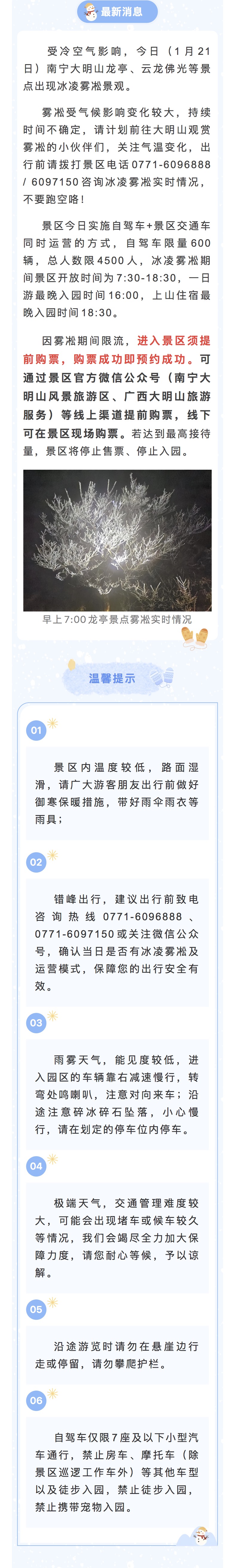 南宁大明山景区今日(1月21日)出现冰凌雾凇景观,可自驾入园!