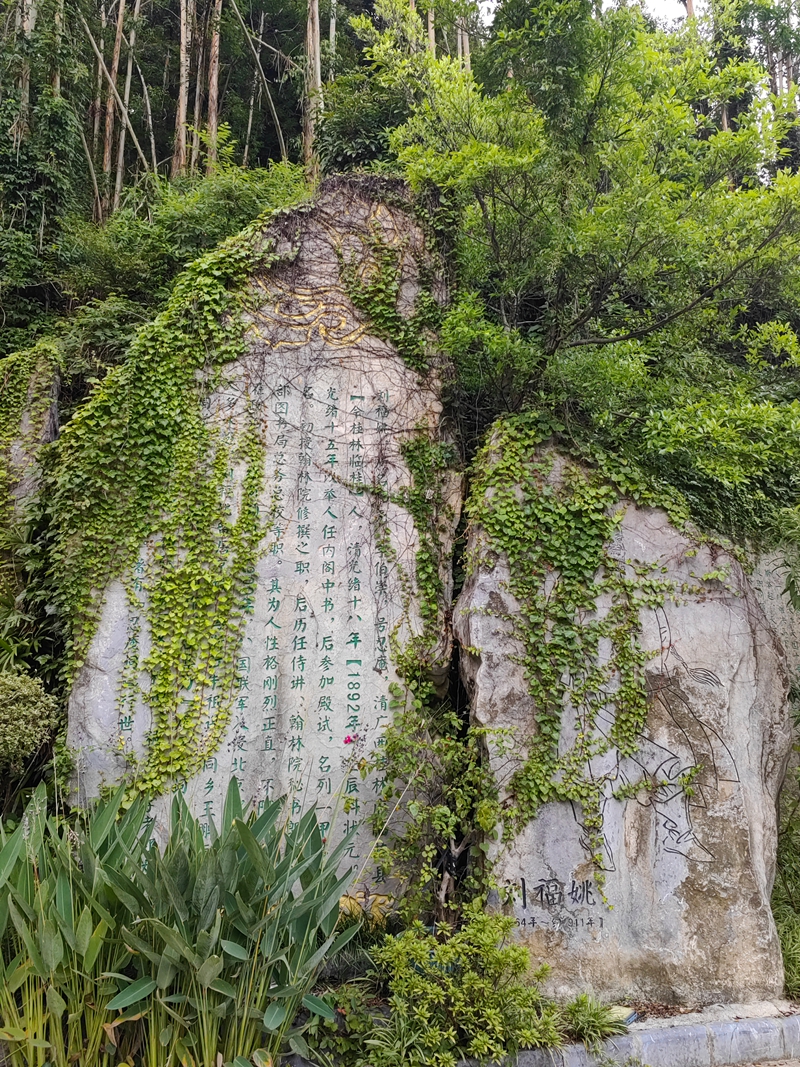 下山经莲海景区,粉红荷花在骄阳下亭亭玉立,顽强开放。红墙院楼"三元及第" 石刻前,老黄猜:"是说古时候有人考状元来报喜?" 他爱人查手机笑点头:"还真对,是广西' 三元及第' 才子的故事。" 乐乐摸碑说:"我也要考第一!" 阳光落在"龙门捷报" 木牌上,暖意似从石中渗出。