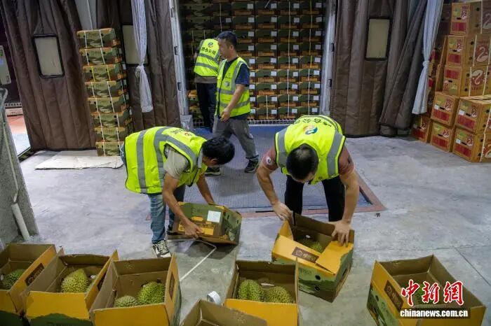 资料图:在广西凭祥友谊关口岸货物查验平台 从东南亚进口的榴莲接受海关查验 翟李强 摄