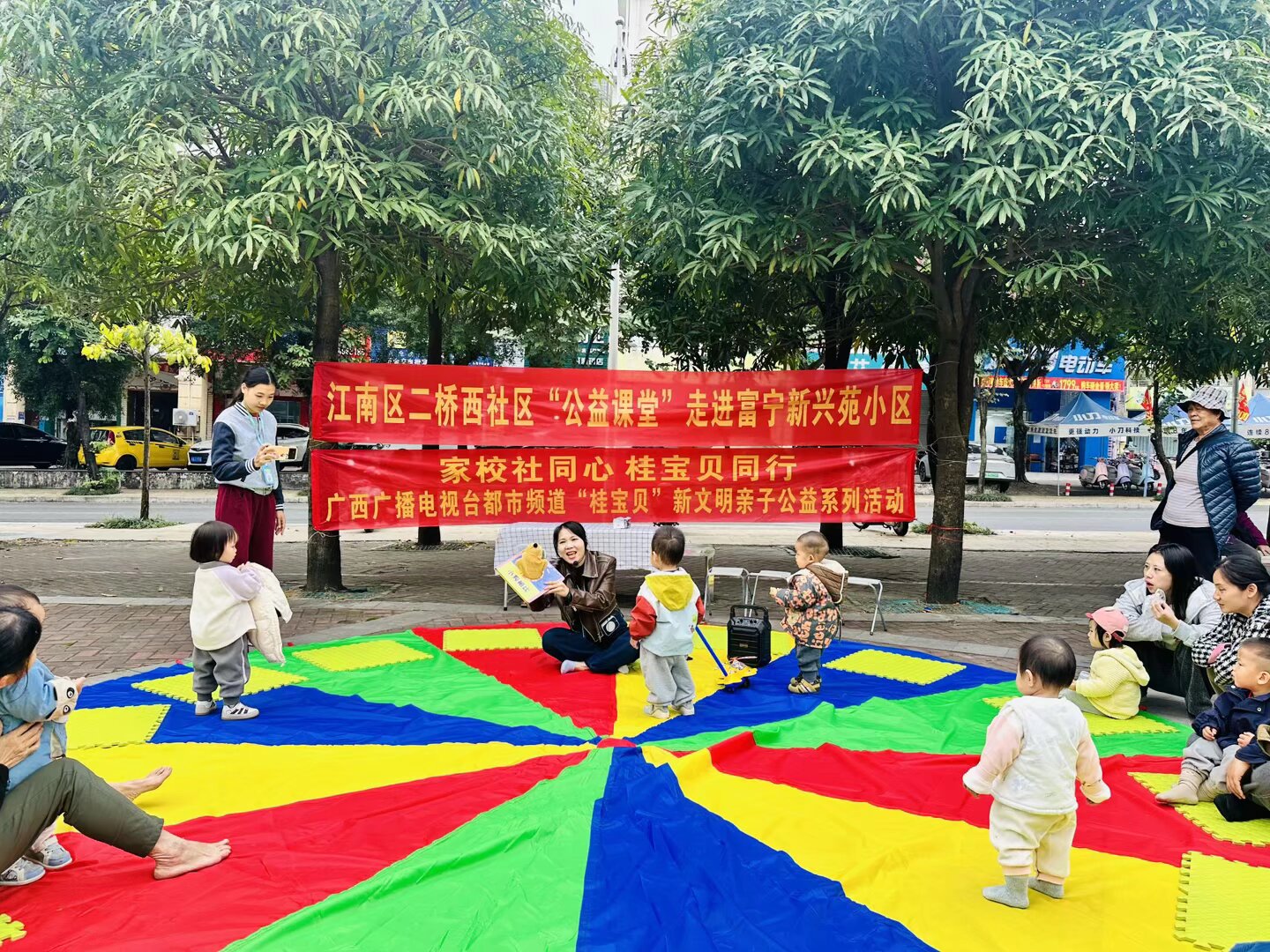 为深入落实家校社协同育人“教联体”建设要求,将普惠性早教服务送到居民家门口,近日,南宁市江南区春之蕾幼儿园联合江南区二桥西社区居民委员会,在富宁新兴苑小区开展“桂宝贝”亲子公益活动,为辖区0-6岁幼儿家庭搭建起互动成长的平台。