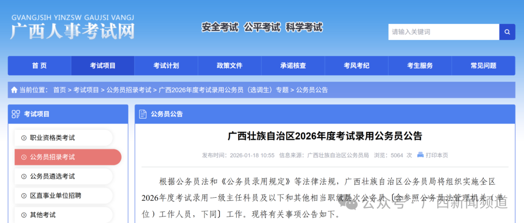报考人员从2026年1月18日起,可以登录广西人事考试网(www.gxpta.com.cn)、八桂先锋网(www.bgxf.gov.cn)查阅《计划表》。