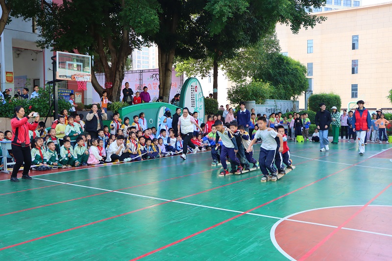 极具民族特色的三人板鞋项目,无疑是本届运动会的一大看点。一至六年级的学子们三人并肩,脚绑板鞋同步前行,在“一二一”的口令中培养默契、凝聚力量,感受传统运动的独特魅力。