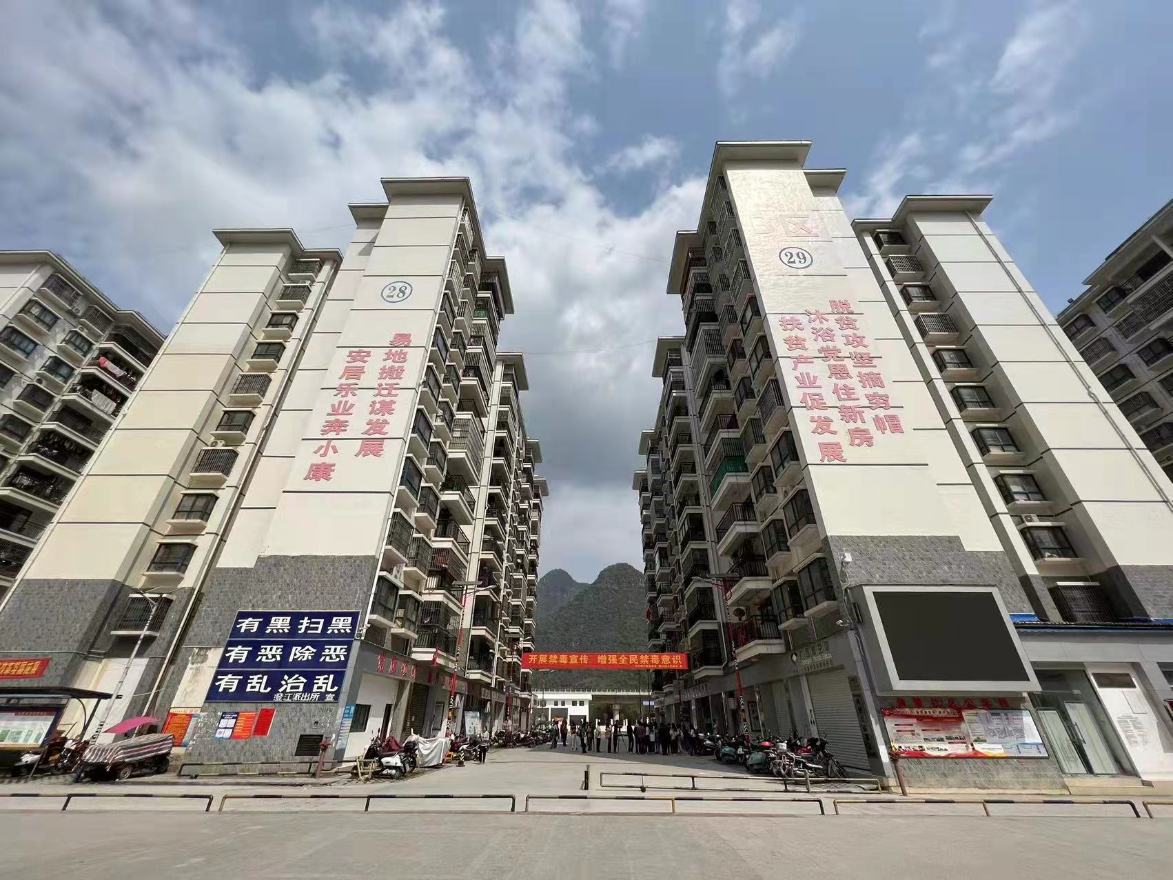 都安县八仙易地扶贫搬迁安置新区位于澄江镇政府所在地东南面,总占地203亩,建设安置住房64栋4960套,目前已搬迁入住18个乡镇200个村4678户19988人,是河池市搬迁人口规模最大的易地扶贫搬迁安置区。