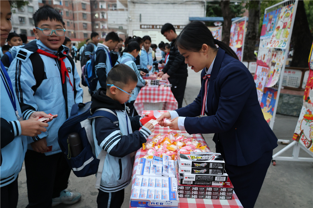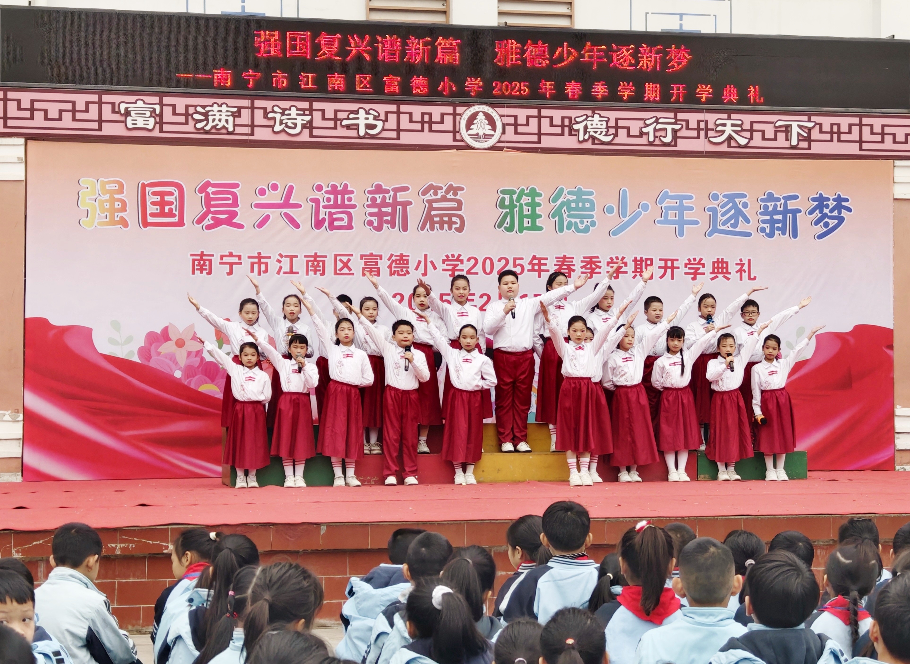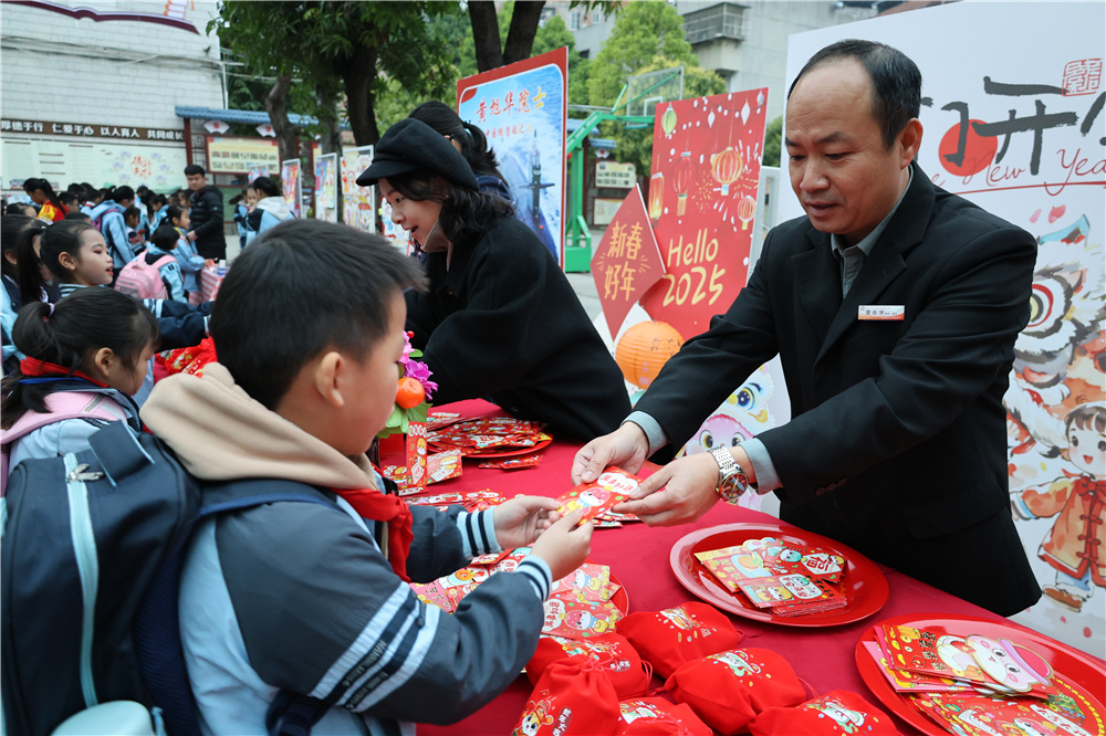 迎着初春的薄雾,怀着激动的心情,2025年2月17日上午,富德小学召开主题为“强国复兴谱新篇 雅德少年逐新梦 ”的开学典礼活动,当日,校门口满是温馨,学校领导给老师和同学们发新年祝福红包,红包里的幸运券承载着关怀,让孩子们满心欢喜。接着,学生们凭券在礼物兑换区换取礼物,希望同学们蛇年启新程,学业一路升,也祝老师们教学之路满是繁花,喜乐无忧。