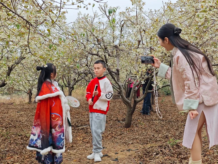 小朋友 梁可馨: 今天我和哥哥他们一起来看山楂花,这些白色的小花儿特别漂亮,而且我还特地穿上了我们中国的传统服饰来拍照,很开心。