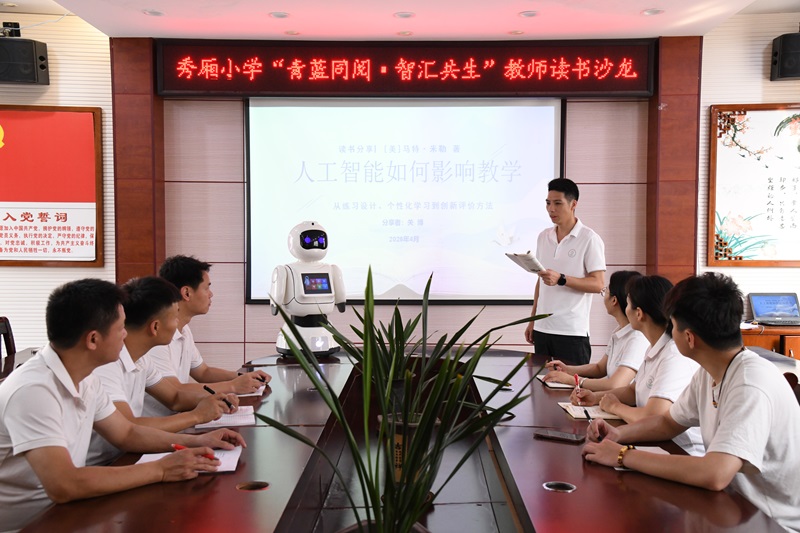学校以“青蓝同阅·智汇共生”为主题,依托青蓝师徒结对机制,组织教师共读教育名篇与专业专著。创新融入智能机器人伴读答疑模式,以科技赋能阅读,打破传统教研局限。师徒携手共读、聚力共研,结合日常课堂教学实践分享读书感悟、交流教育思考、碰撞教学智慧。