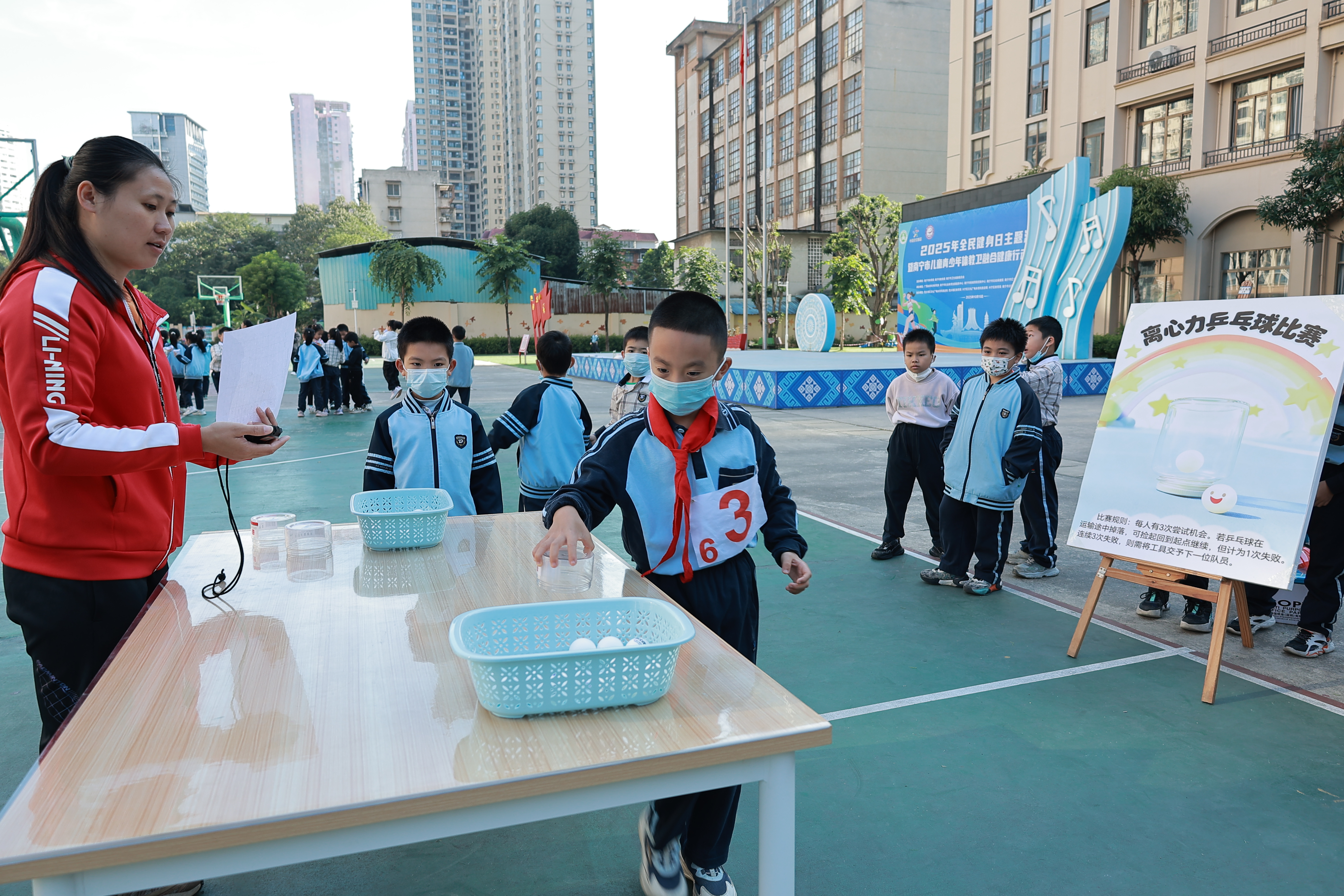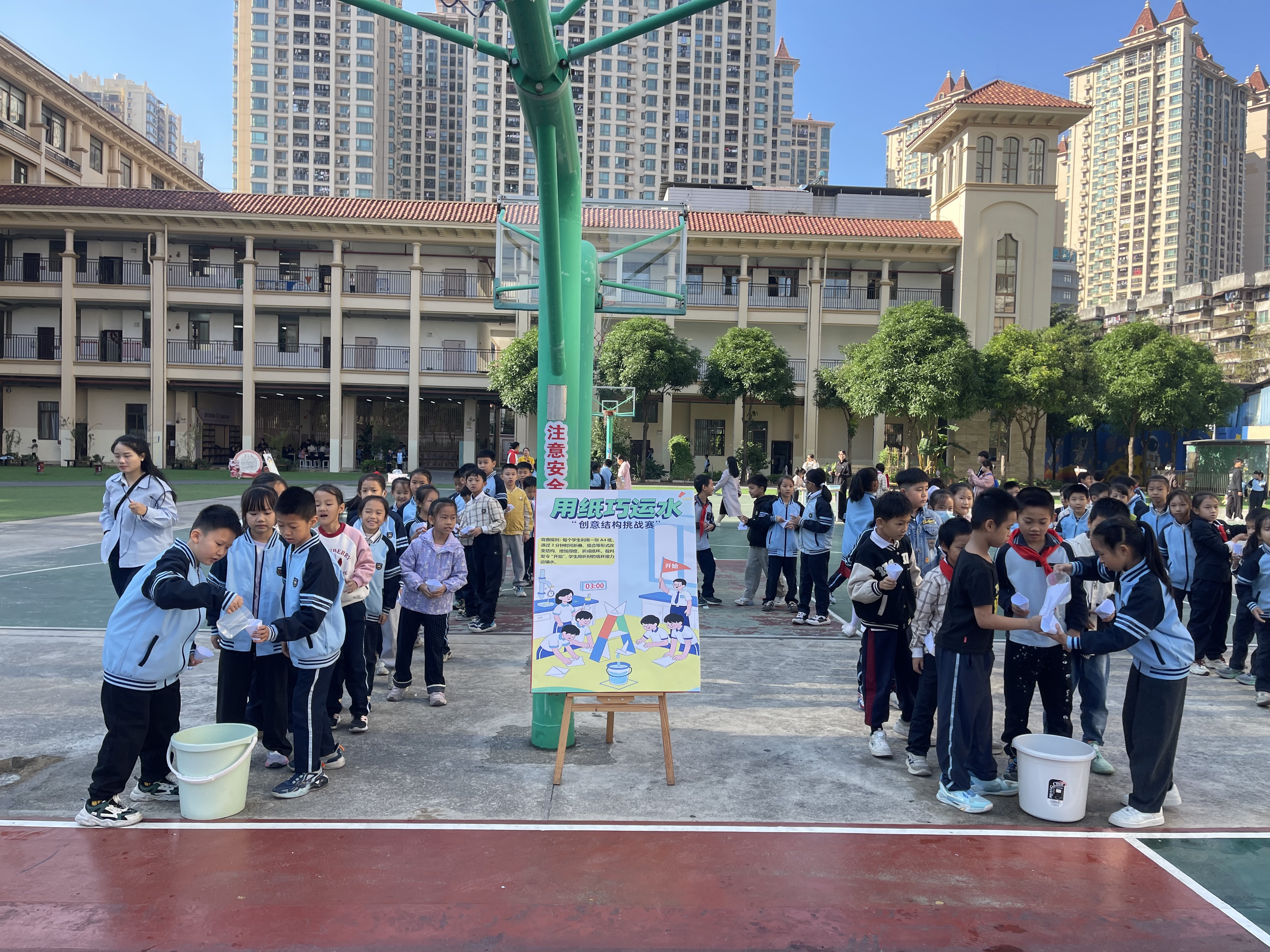 活动现场热闹非凡,各年级竞赛项目各具特色,紧扣科学原理,兼顾趣味性与实践性。一年级的纸杯叠高考验团队协作,二年级的离心力乒乓球接力趣味十足,三年级的用纸巧运水挑战结构创新,四年级的平衡鸟制作展现动手智慧,五年级的空气炮比赛兼具创意与实力,六年级的智造纸箱车竞速赛精彩纷呈。此外,铁丝陀螺、鸡蛋撞地球、航模飞行等自由竞赛项目,让不同年龄段的学生都能尽情发挥创意,在动手实践中解锁科学奥秘。