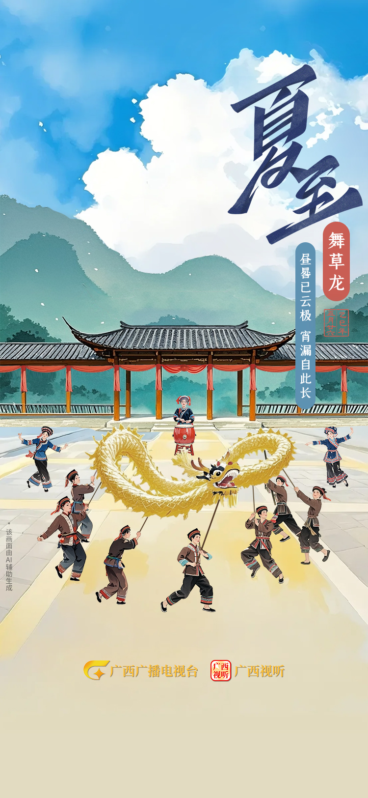 夏至是最早被观察和确立的节气之一,这一天昼最长夜最短,气温达到全年较高水平,降雨集中,雷雨天气频发。夏至还是一场热闹的庆典。在罗城仫佬族自治县、灵山县等地,舞草龙是夏至的重头戏,年轻力壮的小伙们舞动草龙,或盘旋,或翻腾,动作矫健有力,展示着各民族人民对风调雨顺、五谷丰登的祈愿。仪式的最后,人们将草龙焚烧,寓意送龙入海,祈求神龙带走灾祸,保佑四方平安。