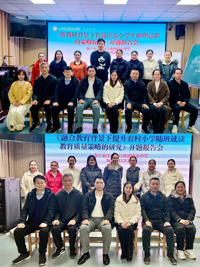 近日,通过南宁市“十四五”规划课题立项的南宁市江南区江西镇中心小学《新教材背景下有效培养小学生推理意识的策略研究》和南宁市江南区江西镇那廊小学《融合教育背景下提升农村小学随班就读教育质量策略的研究》,在南宁市江南区江西镇中心小学举行开题论证会。