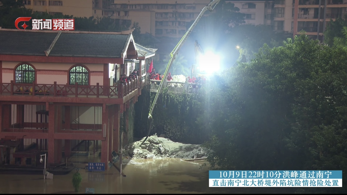 根据南宁水文中心站发布的洪峰信息:郁江南宁水文站于2025年10月9日22时10分出现75.90米的洪峰水位(警戒水位73.0米),超警2.90米,流量11700立方米每秒。