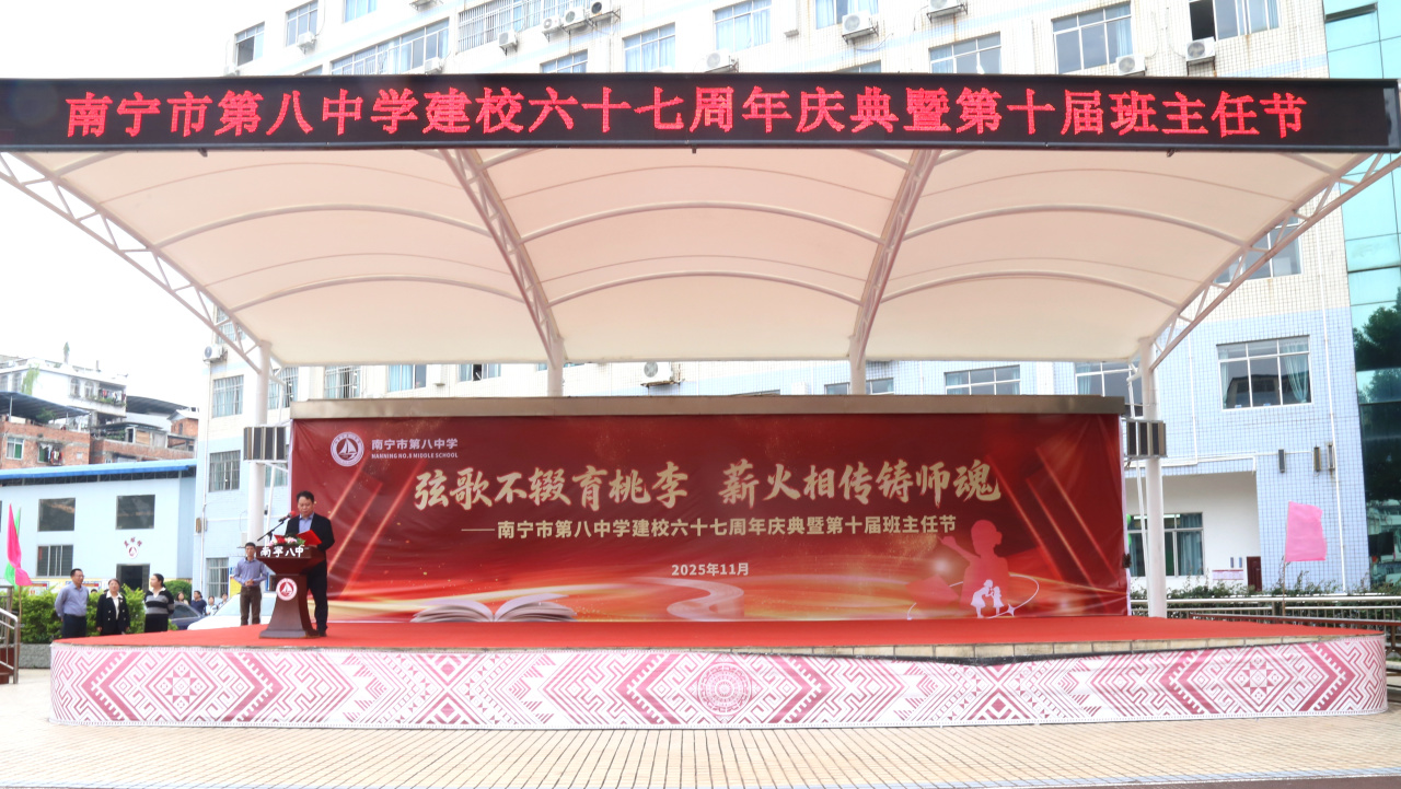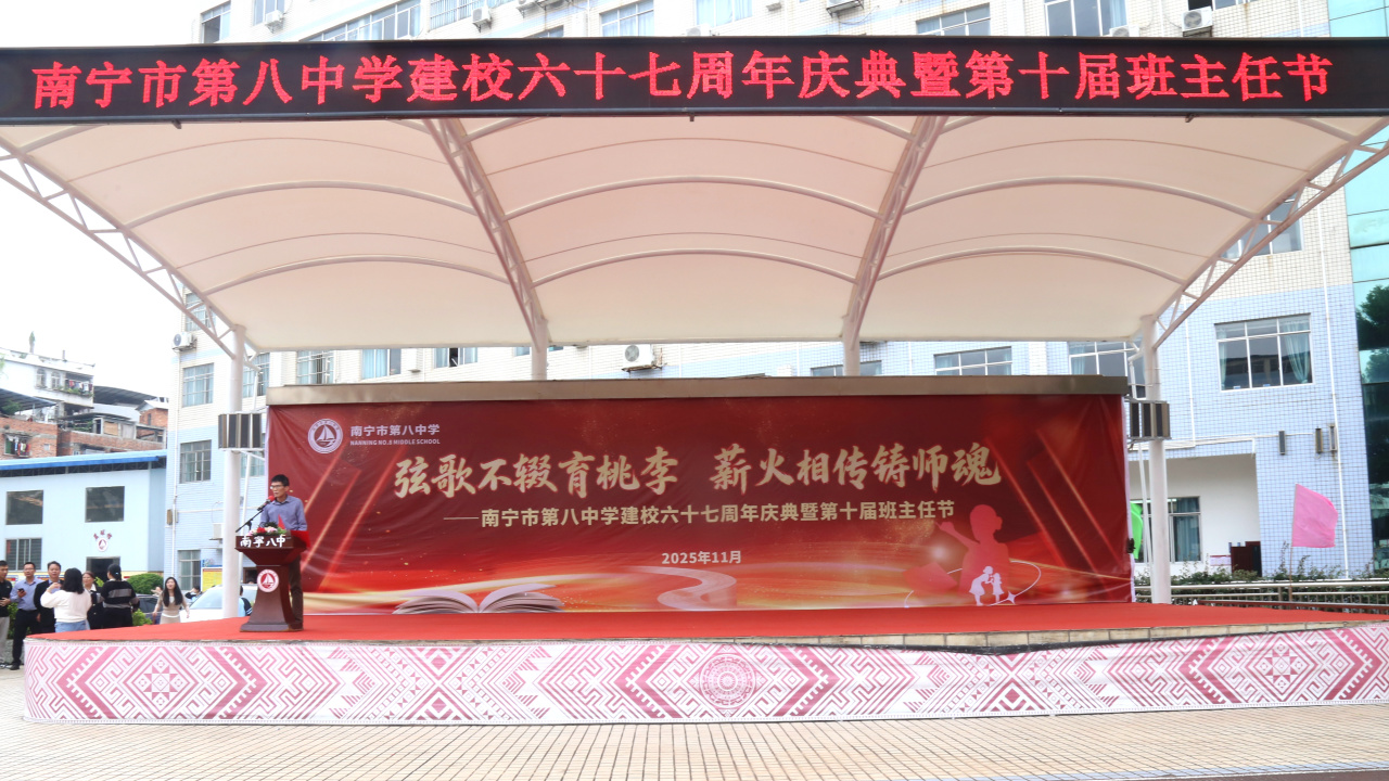 11月17日,南宁市第八中学全体师生齐聚操场,隆重举行建校六十七周年暨第十届班主任节活动,活动以“弦歌不辍育桃李,薪火相传铸师魂”为主题,共贺学校六十七载辉煌历程,共敬班主任群体的匠心坚守。