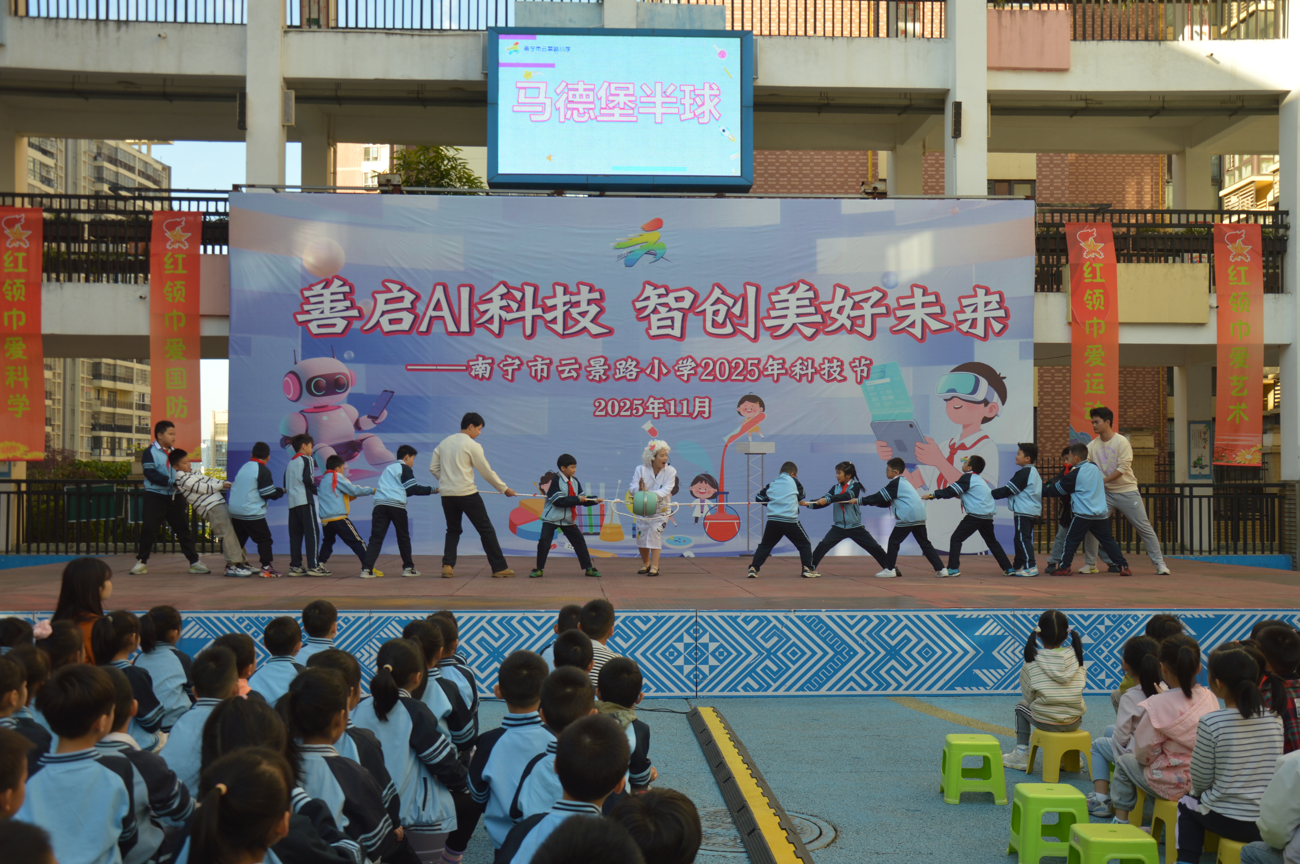 近日,南宁市云景路小学2025年科技节在庄严的升旗仪式中正式启幕。学校领导发表讲话,勉励孩子们效仿科学家的行事方式,以好奇之心探寻科学奥秘,以实践之勇攀登科技高峰。