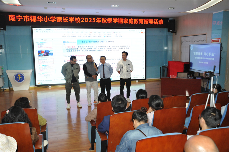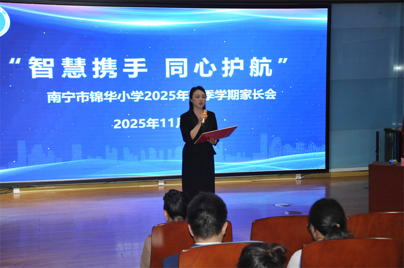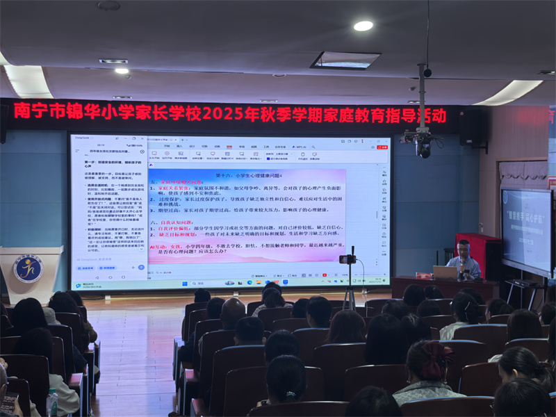 当人工智能技术与心理教育、家庭教育深度交融,会孕育出怎样的创新育人生态?11月12日晚上,南宁市锦华小学以“智慧携手 同心护航”为主题,召开2025年秋季学期家长会。本次会议突破性地将“AI赋能”作为核心亮点,贯穿心理教育与家庭教育指导全过程,为家长带来科技驱动下的科学育儿新范式。本次会议,学校通过校长致辞、专家授课、班级交流三个核心环节,与家长们深入沟通“心理健康+全面发展”的教育理念,共同探讨家校协同育人、守护孩子心灵成长的方法。