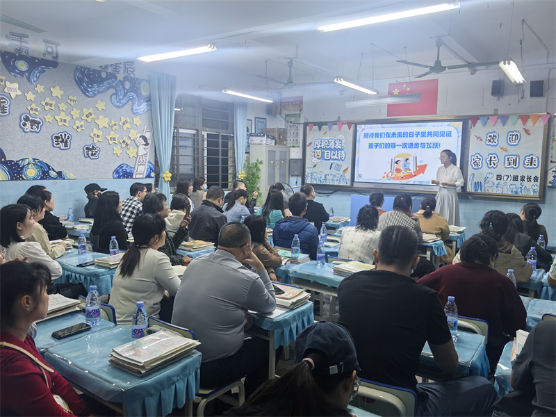 家长会在温馨有序的氛围中拉开帷幕。宁永红校长在致辞中回顾了学校一年来的成果:学校开展了“AI+红领巾”、科技嘉年华、学科节等活动,学生们在舞蹈、航空航天、人工智能等比赛中屡获佳绩,118人获评市级“三好学生”;教师团队也表现出色,多位教师被认定为广西基础教育自治区级骨干教师。她强调,教育不仅是知识传递,更是心灵启迪,学校将持续深化“AI+心育”模式,支持学生全面成长。