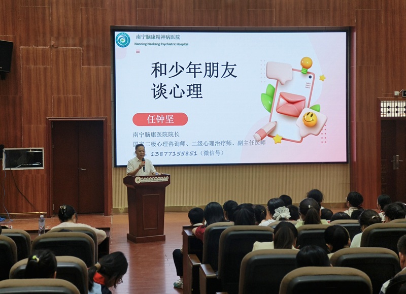 为加强青少年心理健康教育,提高师生心理调适能力,2025年10月29日下午,南宁脑康医院院长、国家二级心理咨询师、二级心理治疗师任钟坚,带领团队走进南宁市林里桥中段小学,为林里师生带来一场以“和少年朋友谈心理”为主题的身心成长健康知识讲座。
