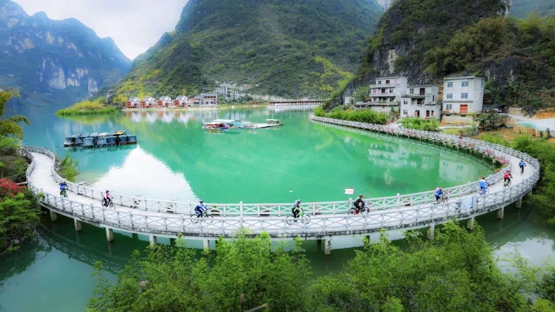 游客在凌云县浩坤湖环湖栈道骑行。黄元荣 李彩兰 摄