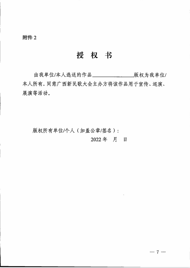 点击下载:广西新民歌大会推荐表、授权书.doc
