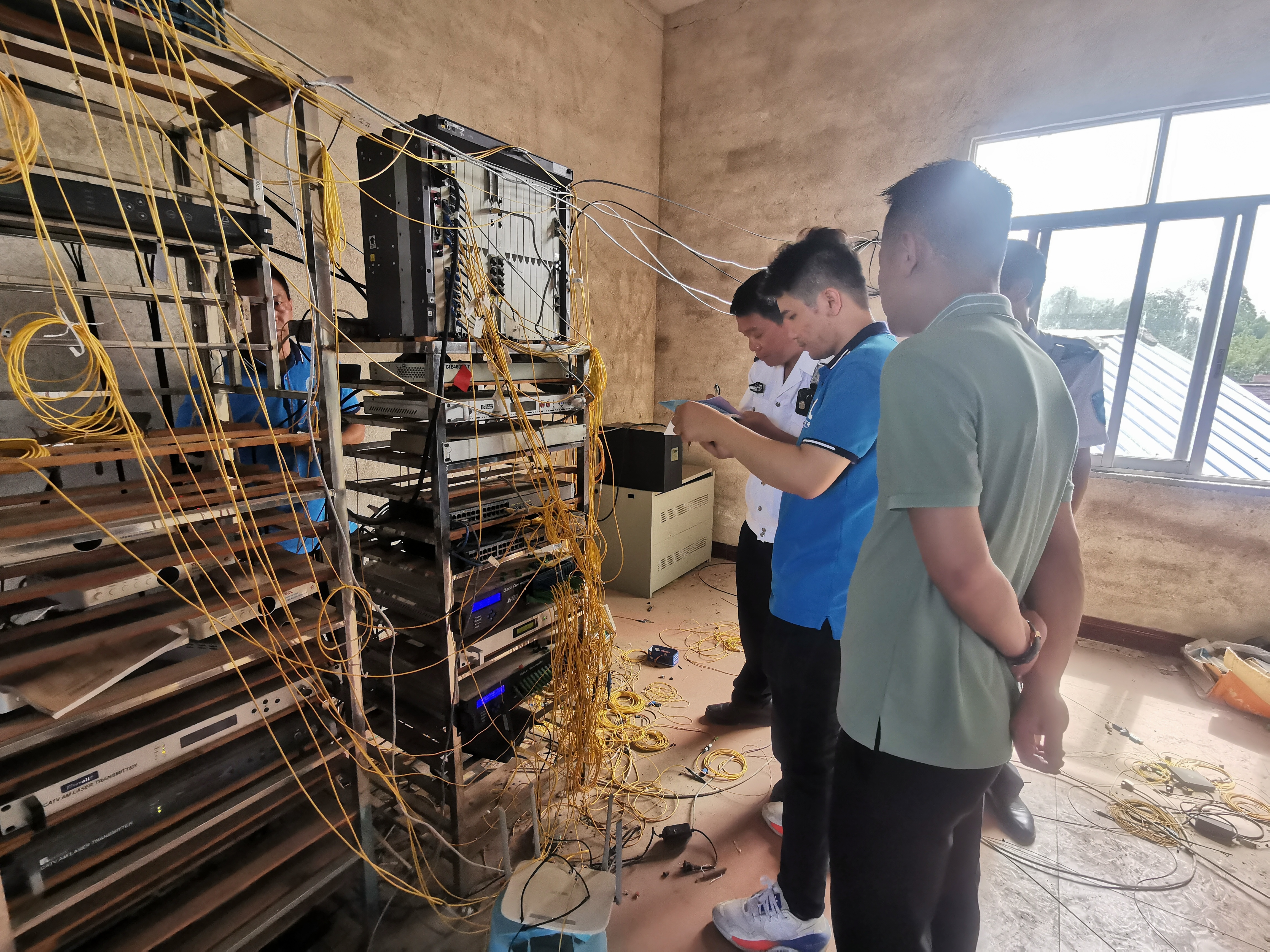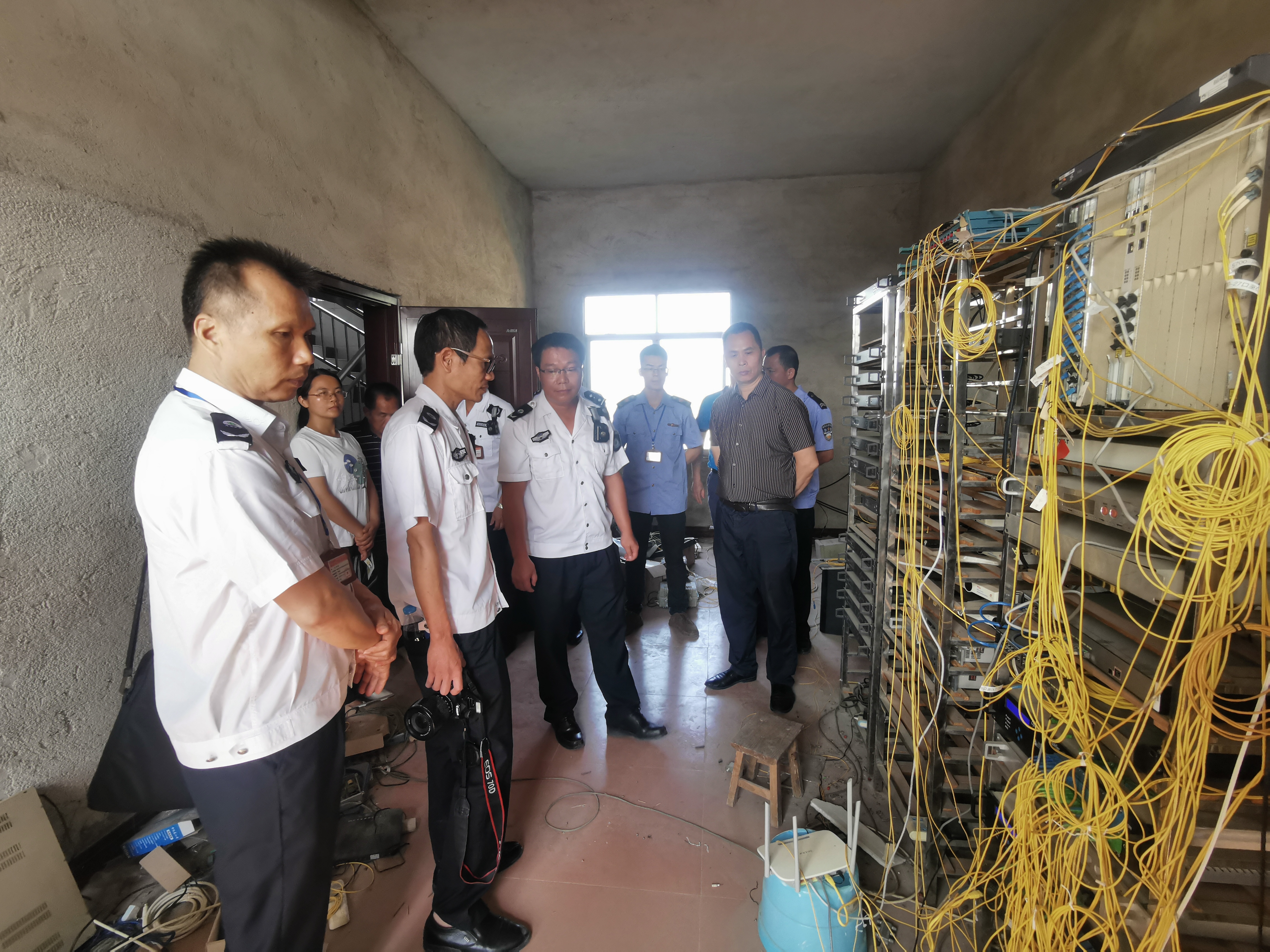 当天上午9时,来自各单位的整治人员集中黄村村委,交流协作、明确分工。随后在村干部的带领下前往黄某家中,向其详细说明“小片网”对国家政治、信息等方面的威胁,并协商进行取缔。在前端机房中,百合派出所警员严格维护现场秩序,市场监督管理所干部对私人“小片网”业主涉嫌无证经营行为进行调查,文化执法大队成员仔细检查机房设备并登记取证,依法进行整治。在多方的共同努力下,黄村“小片网”顺利完成取缔,涉及黄村、武留2个村委的用户约400户。