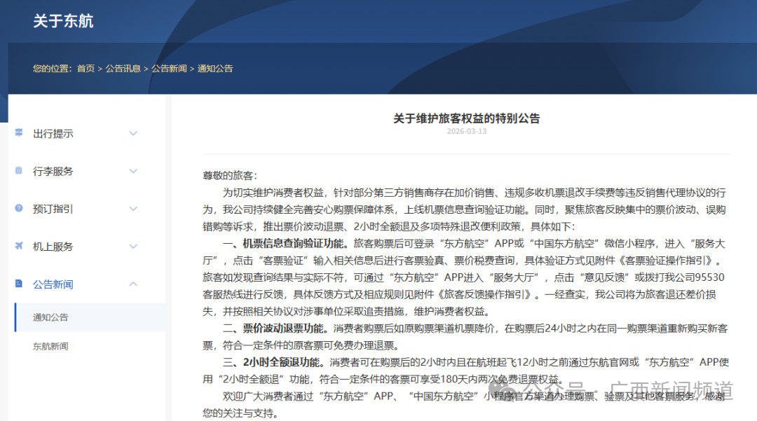 南航一贯重视旅客权益保护,为持续提升旅客出行体验,我公司再次向广大旅客公告,南航已采取以下措施持续保障旅客权益: