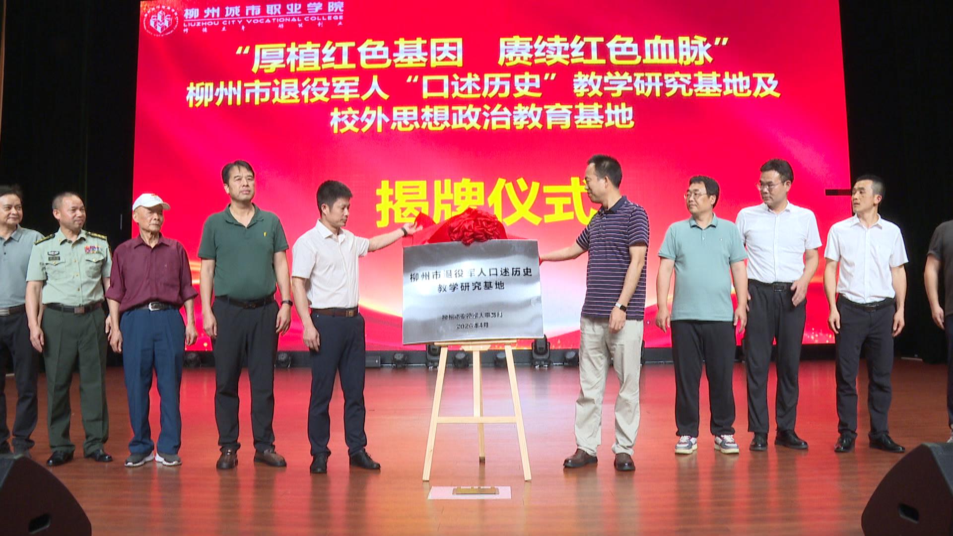 当天,由市退役军人事务局和柳州城市职业学院共建的柳州市退役军人“口述历史”教学研究基地及校外思想政治教育基地正式揭牌。今后,军休干部走进校园讲述革命故事,青年学生走进军休所进行口述历史影像记录等活动将持续开展。