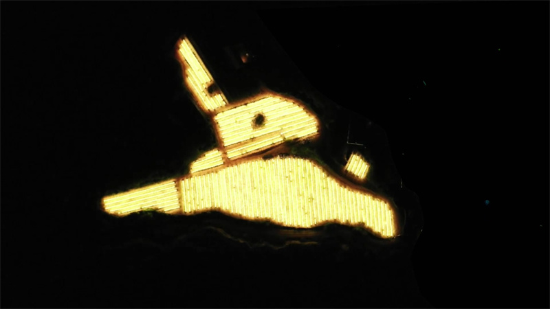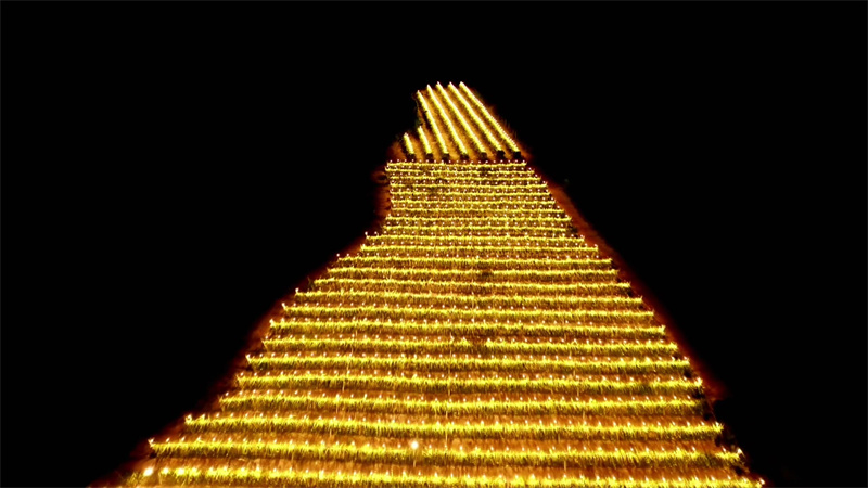 在糯垌镇塘坡村的火龙果种植基地,灯光如璀璨明珠点缀广袤田野,场面蔚为壮观、美不胜收,犹如一头圆滚滚的“金猪”。而在绿云村火龙果种植基地,灯光犹如地上星空,点点星火就在脚下,一只金灿灿的“兔子”正在奔跑。