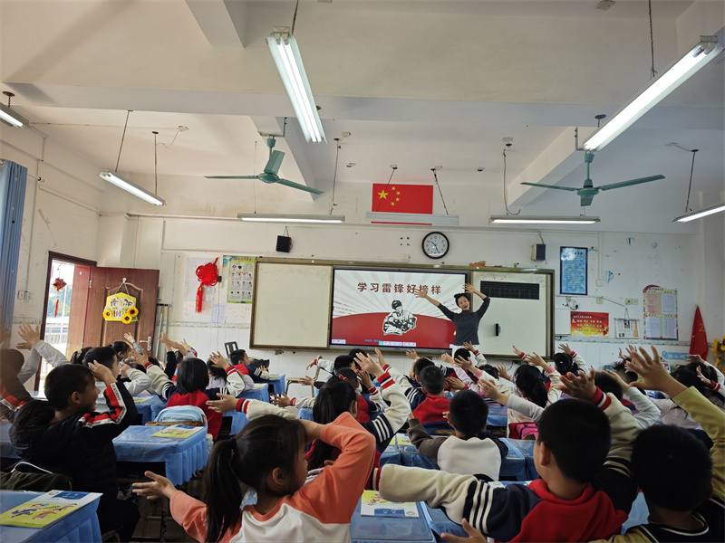 活动伊始,各班级依托音乐课、美术课开展特色活动,音乐老师带领同学们唱响《学习雷锋好榜样》等红色歌曲,激昂的旋律在教室中回荡,让雷锋精神在歌声中浸润心田;美术课上,同学们以 “我心中的雷锋”为主题挥毫创作,用五彩画笔勾勒雷锋形象、描绘雷锋做好事的暖心场景,在艺术创作中感受雷锋精神的魅力,让榜样的力量根植心中。故事声声悟初心,分层活动促成长。