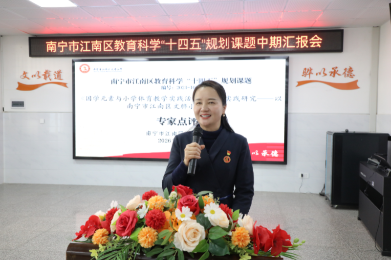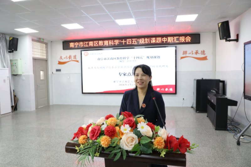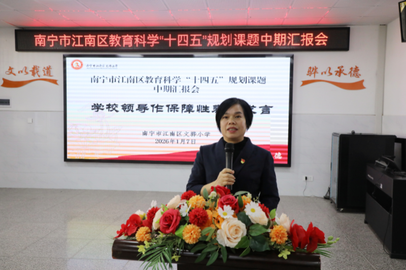 教育科研是教学提质的核心引擎,阶段性复盘助力精准深耕育人之路。2026年1月7日,南宁市江南区文骅小学城区级课题中期汇报会如期举行,谢碧英校长、张文裕书记、周妍主任等领导与各课题负责人及成员齐聚一堂,通过成果展示、专业点评、方向校准,为课题研究纵深推进注入强劲动力。
