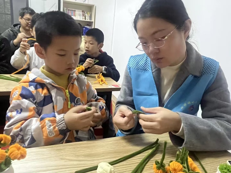 志愿者老师为孩子们讲解扭扭花制作的基础技巧▲