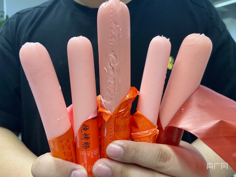 记者购买的5种市面上常见的淀粉肠产品(央广网记者 邵蓝洁摄)