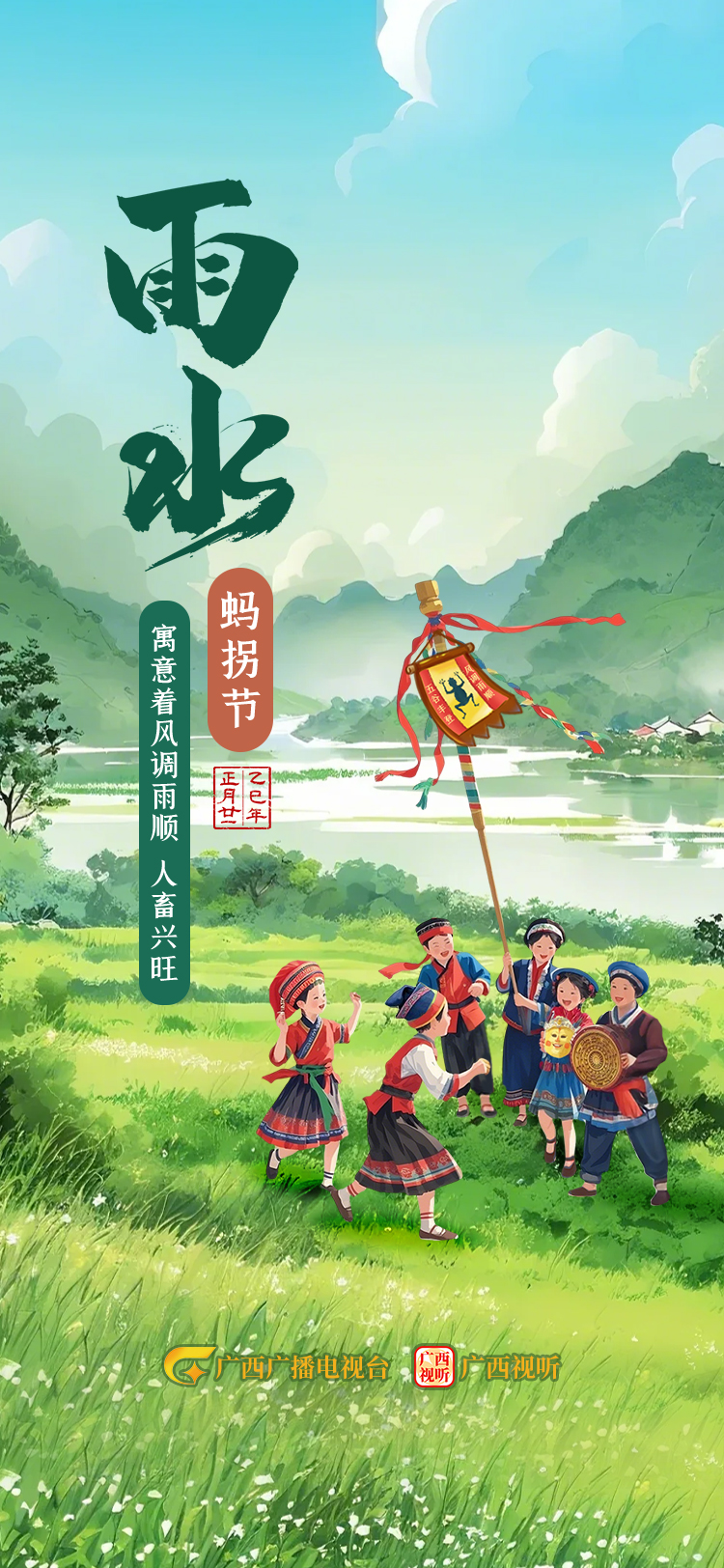 春风化雨、万物生长。在广西,雨水节气是-个充满生机与活力的时节,与当地农业生产中的蚂拐文化、铜鼓文化、炮龙文化等紧密相连。