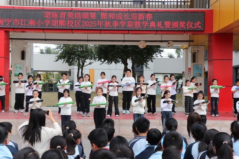 1月30日下午,南宁市江南小学珺熙校区以“珺琢育美结硕果,熙和成长迎新春”为主题,在操场举行2025年秋季学期散学典礼暨颁奖仪式。