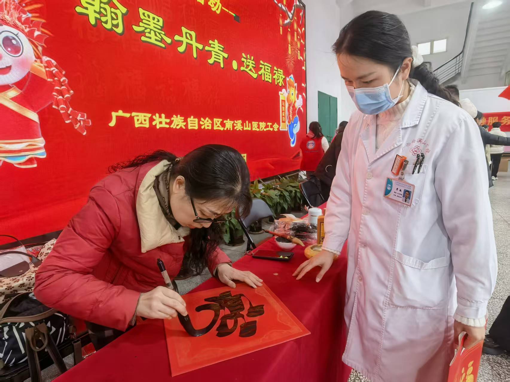 上周,自治区南溪山医院“翰墨丹青,送福禄”新春慰问活动现场,夫人应邀执笔,为日夜坚守、护佑安康的医护人员挥毫送福,成为全场最温暖的风景。鲜红耀眼的活动背景前,她俯身案头,凝神运笔,浓墨在红纸之上缓缓晕开,一笔一画,皆是真心;一联一字,全为祝福。一副副春联堆叠成山,一张张福字喜气盎然,连续近三个小时不停书写,收笔之时,她肩颈酸痛,双腿发麻,可当看到医护人员捧着春联与福字,脸上漾开真诚的笑意与谢意,所有的疲惫都在瞬间烟消云散,只剩满心的欢喜与安宁。白衣执甲护苍生,翰墨留香敬医者,她以一支柔毫,向守护万家的逆行者致以最诚挚的敬意,小小春联,承载的不仅是新春吉言,更是藏于心底的大爱与家国情怀。