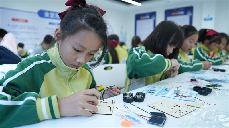 本次研学课程的核心在于“学以致用”。在手工实操环节,四年级同学们迎来了“月球车制作”的挑战。“看!我的月球车动起来了!”当看到自己亲手组装、依靠太阳能板驱动的小车在模拟月面上缓缓前行时,学生小李的脸上洋溢着成功的喜悦。从理解原理到动手拼接,同学们不仅将上午所学的AI与机械知识应用于实践,更在克服困难、团队协作中锻炼了解决问题的能力,真正体会到了创造带来的成就感。一至三年级也在研学导师的带领下,根据年龄特点分层设计了拼装滑翔机、风力车等课程。