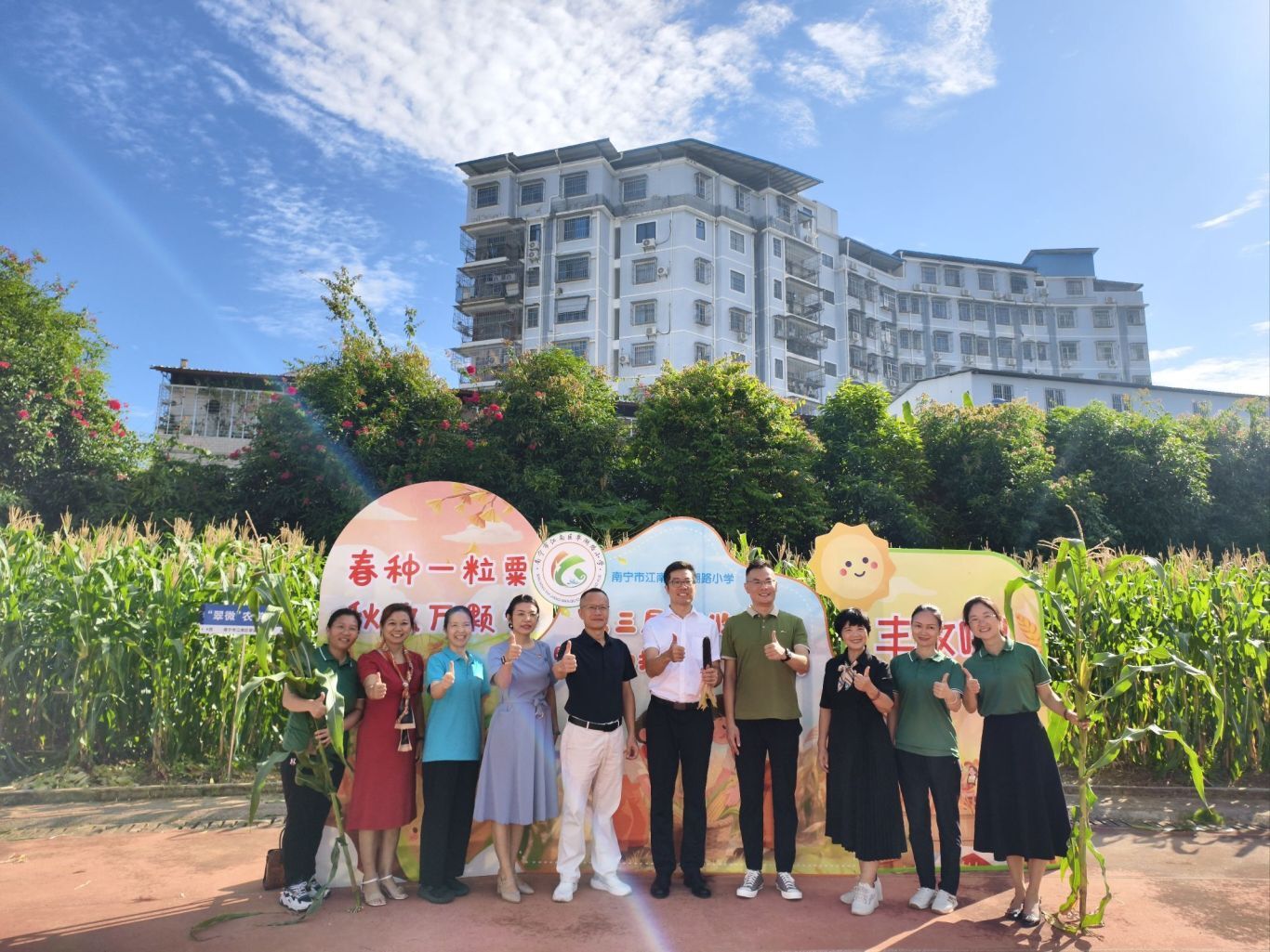 本次活动尤为荣幸地邀请到了广西农业科学院离退工作处党总支副书记苏启臣,农科院老科协关心下一代讲师特级教师韦美绿,玉米研究所副研究员谢和霞玉米研究所副研究员翟瑞宁,离退处综合科科长陈露等专家亲临指导,为活动增添了浓厚的专业色彩。专家们的到来,充分体现了科研单位对我校劳动教育实践的大力支持。随后,农科院老科协韦美绿老师与玉米研究所翟瑞宁副研究员给学生做了专题讲座。讲座通过展示科学DV获奖案例、无土栽培实验,讲解玉米知识与粮食安全,有效激发了同学们探索自然、热爱科学的兴趣,营造了浓厚的校园科创氛围。