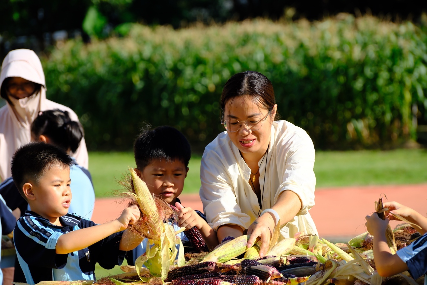 经过家长志愿者的辛勤烹饪和分发,一根根热气腾腾玉米被送到各班同学手中。大家品尝着自己的劳动果实,脸上洋溢着幸福和满足的笑容。