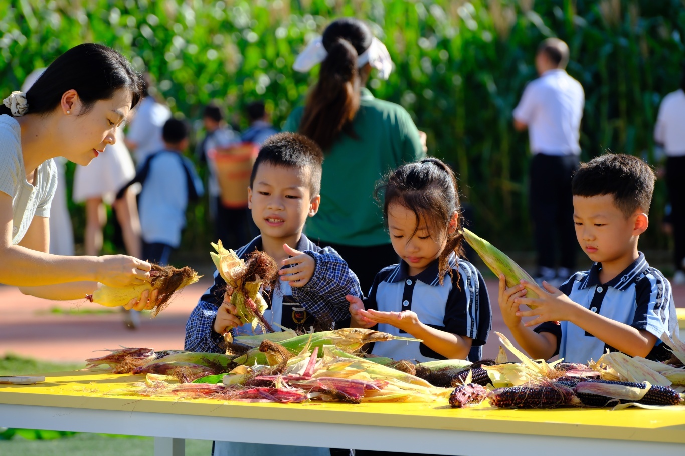 采摘竞赛是今日当之无愧的重头戏。赛场上,小劳动者们全情投入,分工明确。采摘区内,小选手们身着防护装备,动作迅速,精准地将成熟的玉米摘下;搬运区里,同学们接力奔跑,默契配合,将“战利品”快速运至班级存储区;剥叶区中,选手们巧手翻飞,争分夺秒地为玉米褪去“外衣”。比赛现场气氛紧张激烈,又充满了合作的欢声笑语。各班观赛同学的加油呐喊声此起彼伏,汇聚成校园里最动听的乐章。