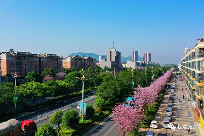 在县城民生路、龙田路、政通路等地,这里的紫荆花已经夹道盛开,一株株紫荆花竞相绽放。紫红色、蝴蝶形的花儿朵朵展颜、簇簇相拥、枝枝妖娆,开得好不热闹。微风袭来,朵朵紫荆花枝摇曳、花影绰绰、香气四溢,如一片片粉紫色云霞,撩人心弦,着实让人心动,成为了县城一道靓丽的风景线。