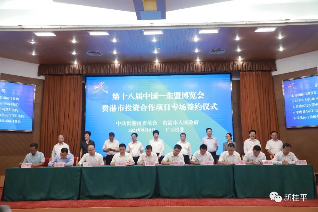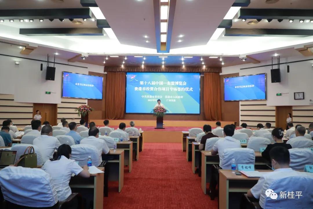 9月9日,第十八届中国东盟博览会贵港市投资合作项目专场签约仪式在贵港隆重举行,贵港市委书记何录春出席签约仪式,贵港市委副书记、市长蓝晓主持仪式。桂平市委副书记、市长黄德佳,市委常委、统战部部长、副市长李进清在会上与4个项目签约。