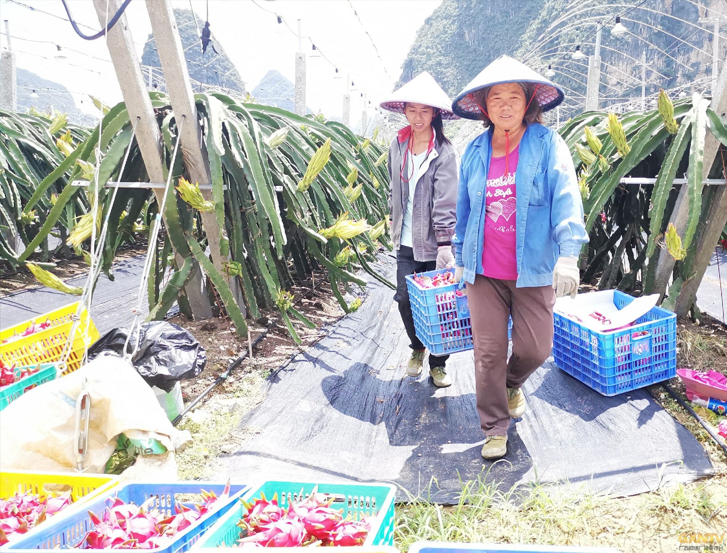 近年来,化峒镇因地制宜,积极引导群众种植火龙果、百香果、柑橘、葡萄等名优水果6000亩,蔬菜8000亩、桑蚕4000亩,推动乡村旅游业融合发展,实现经济作物年产值1.8亿元,助力全镇脱贫攻坚、农业增效、农民增收,村民乐开怀。