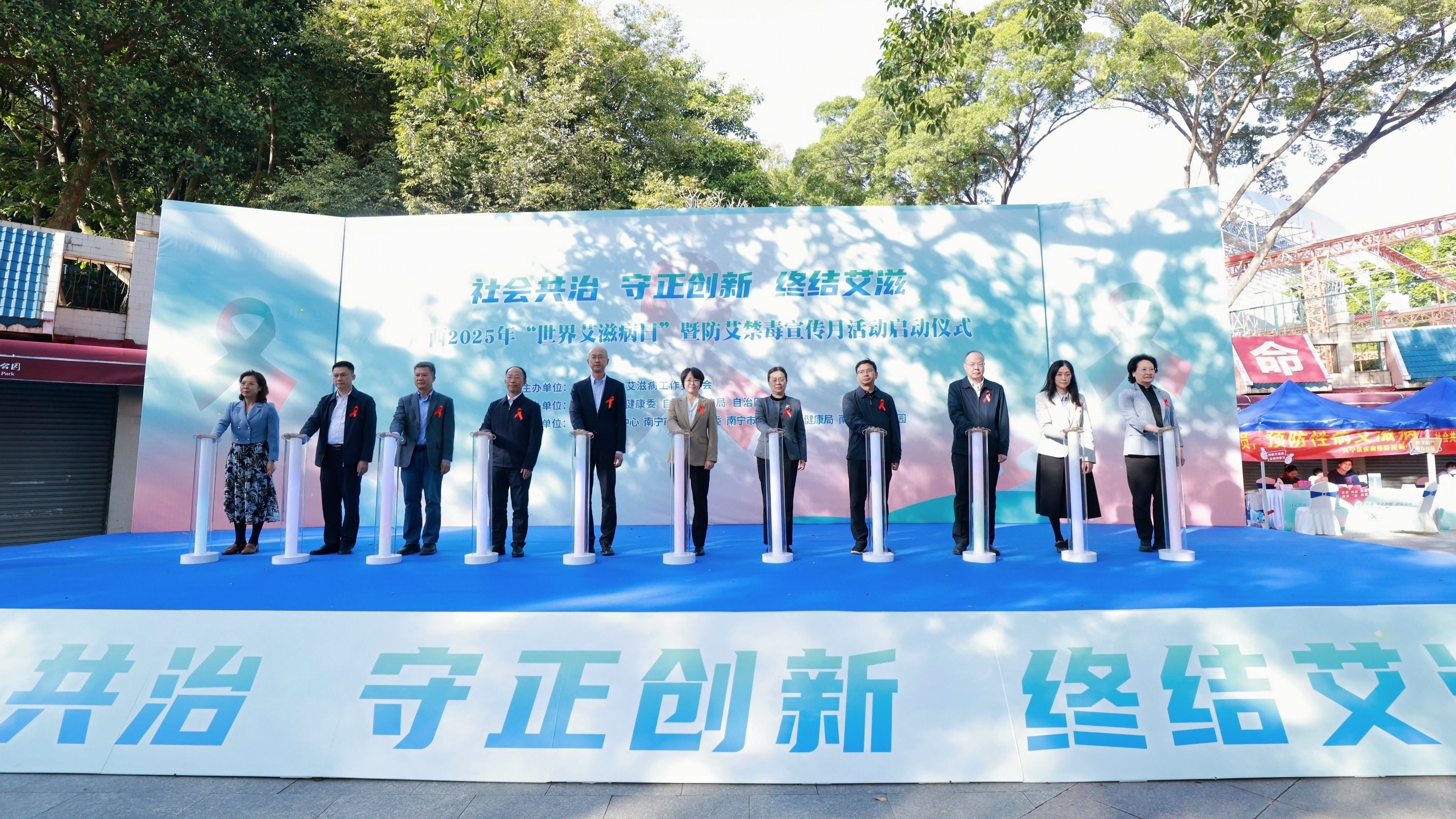 2025年12月1日是第38个“世界艾滋病日”。今年活动日的主题是“社会共治,守正创新,终结艾滋”。为营造艾滋病防治宣传教育良好氛围,动员和倡导全社会积极参与防艾主题宣传活动,11月27日,自治区防治艾滋病工作委员会联合自治区禁毒办在南宁市人民公园举行广西2025年“世界艾滋病日”暨防艾禁毒宣传月活动启动仪式。