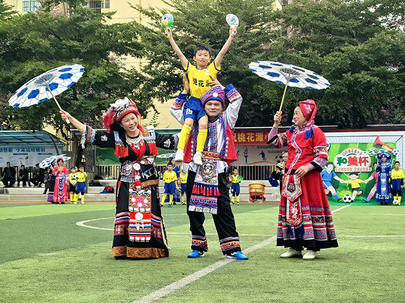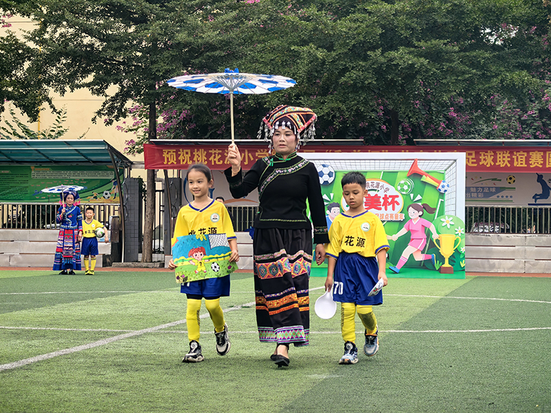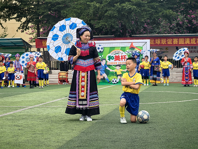 开幕式上亮点纷呈:啦啦队“律动旋风”活力四射,民族服装走秀尽显文化韵味,校园足球小将的球技展示惊艳全场。最引人注目的是3支以队员妈妈为主体的参赛队伍,在表演赛中,她们与校足小队员同台竞技,奋勇拼搏、默契协作,用坚韧的作风赢得全场喝彩,为孩子们树立了榜样。