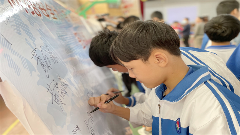 授课结束后,参加活动的师生在签名板上签名,承诺坚决抵制网络诈骗,共同维护网络安全。
