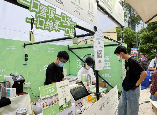 现场还设立了 “奶茶 × 运动”、“奶茶 × 音乐”、“奶茶 × 宠物”、“奶茶 × 美食” 、“奶茶 ×夜经济”五大主题区,引入骑行文化体验、匹克球、寻宝挖掘机奶茶、摇铃盲盒奶茶、live 音乐等年轻化互动内容,构建沉浸式奶茶消费场景。