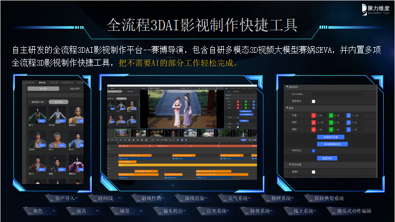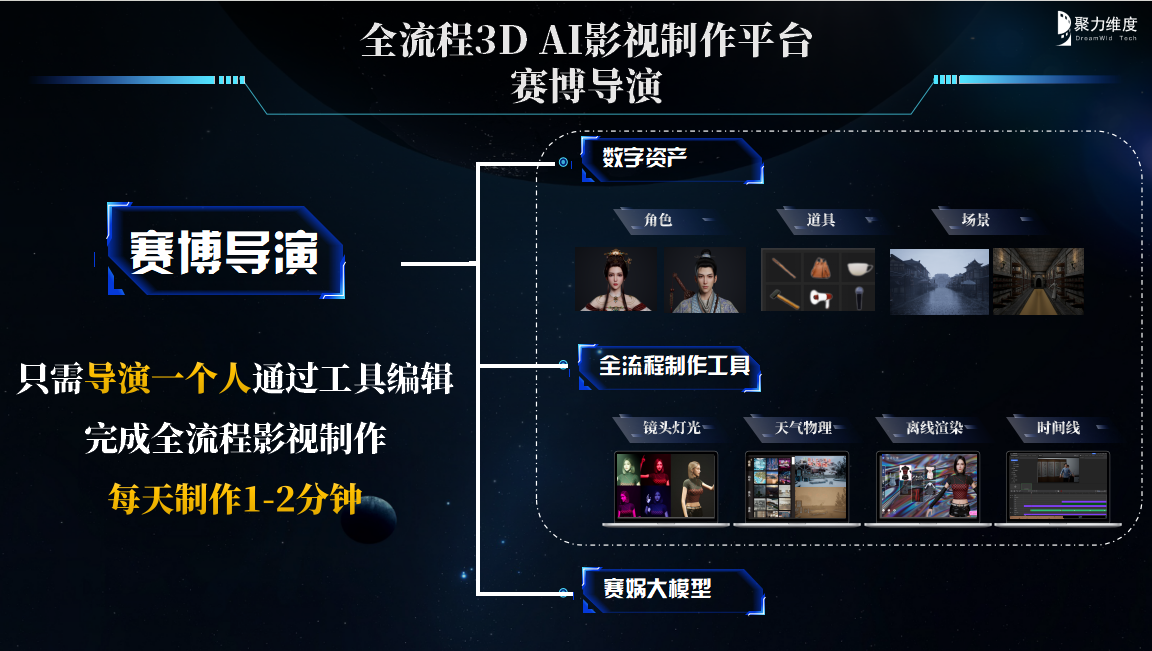 2024年初,随着OpenAI的Sora模型引爆文生视频赛道,聚力维度迅速推出了自己的AI影视制作平台“赛博导演”和3D视频生成大模型“赛娲”。